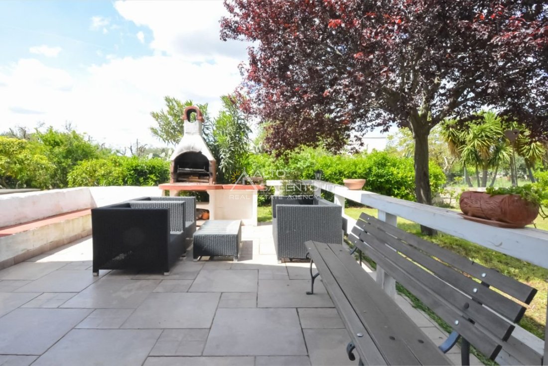 Il grande spazio esterno rappresenta uno dei punti di forza della proprietà: un ambiente ideale per vivere appieno l’aria aperta. L’ampia veranda consente di rilassarsi all’ombra, leggere un libro o organizzare pranzi e cene in compagnia. Il giardino si presta perfettamente per aperitivi all’aperto, mentre la zona barbecue è ideale per piacevoli grigliate.