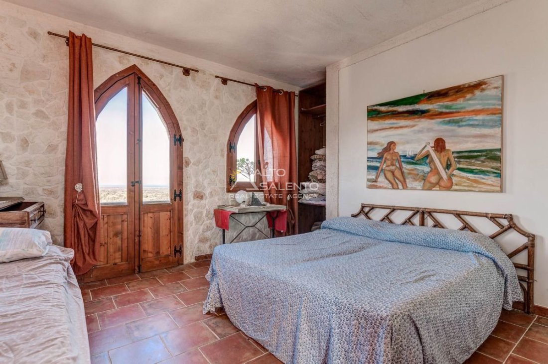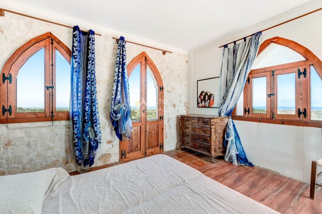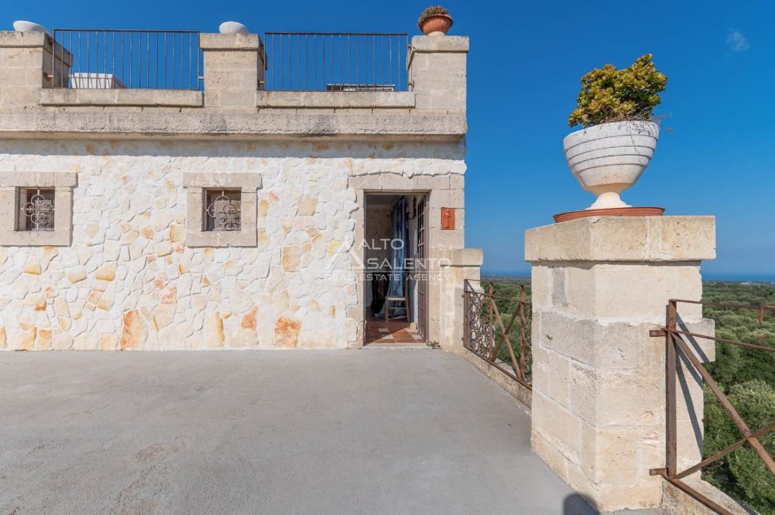 In posizione dominante, con ampia vista mare e panorama aperto sugli ulivi dell’Alto Salento, Villa Arte & Pensieri è una suggestiva residenza country dai richiami medievali, situata a pochi minuti dal centro abitato e in zona di facile accesso.
