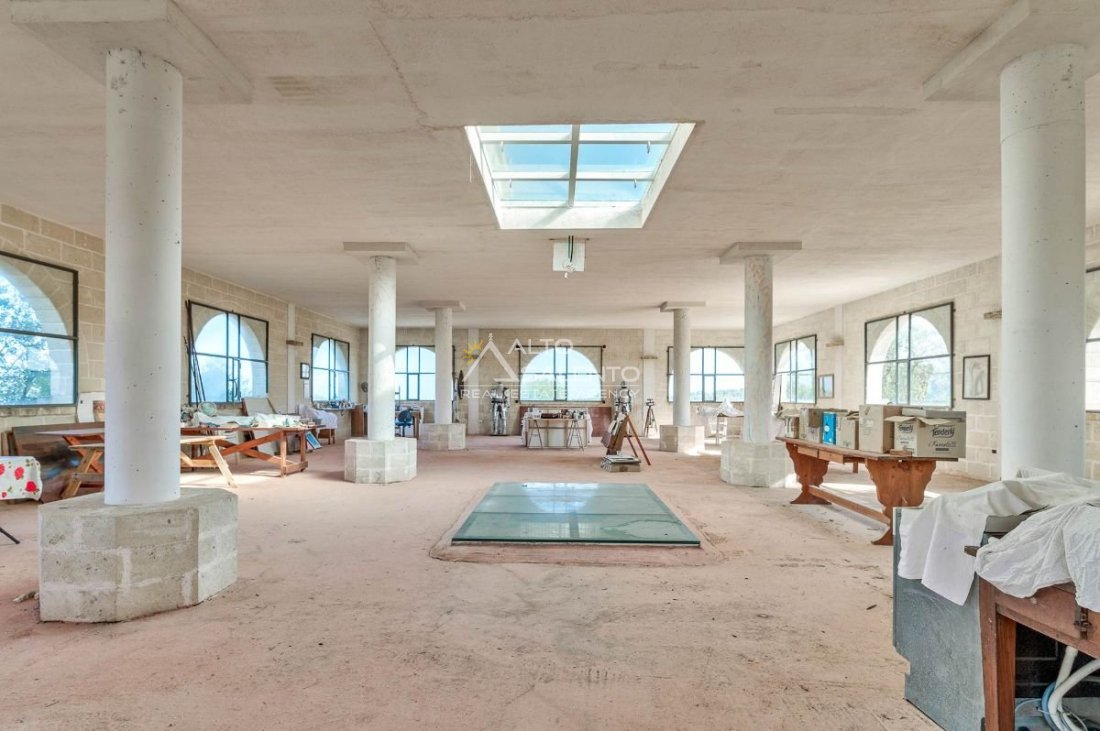 L’open space al piano terra è valorizzato da ampie vetrate e da un suggestivo lucernario a soffitto, che dona grande luminosità agli ambienti.