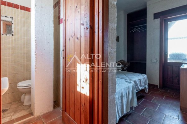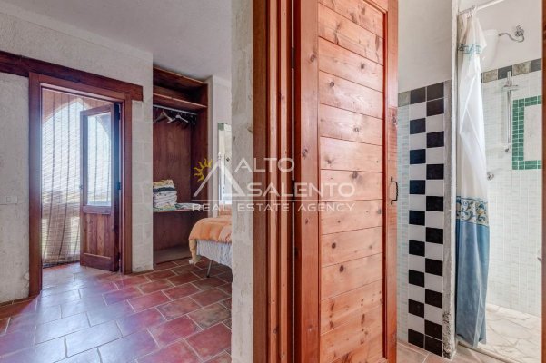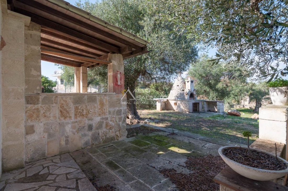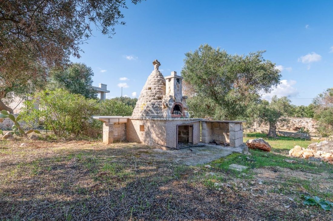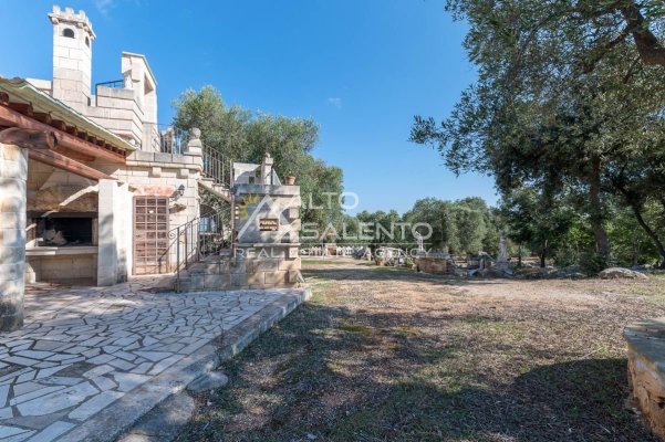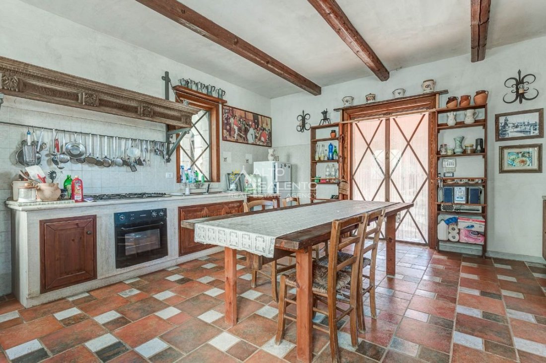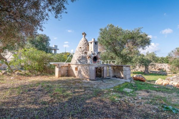 Sempre al piano terra, annessa al corpo principale, è presente una cucina completa, con area esterna attrezzata con barbecue e forno a legna dalle forme di trullo pugliese, elemento architettonico di forte richiamo territoriale.