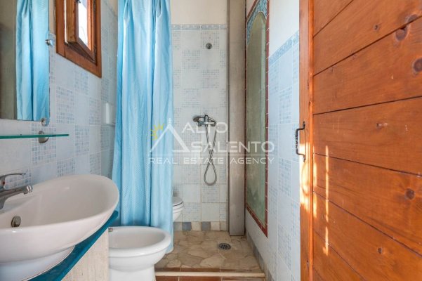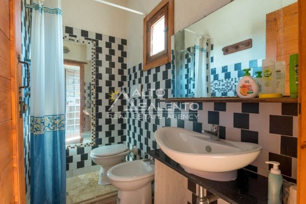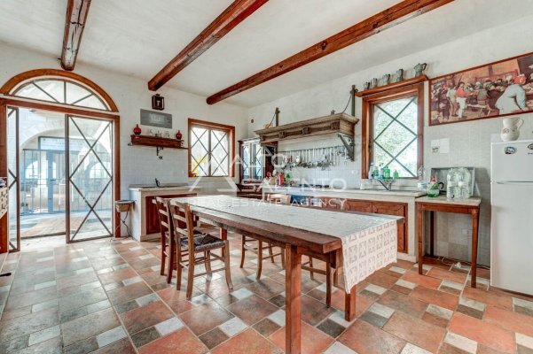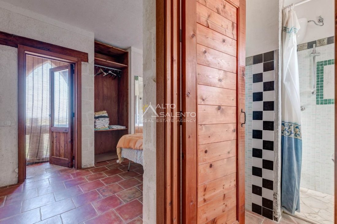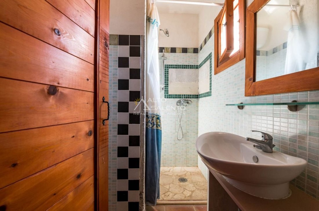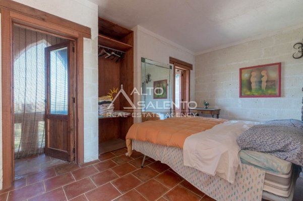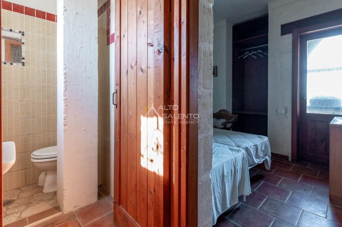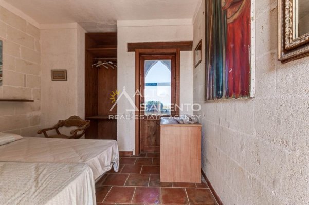 Sempre al piano terra, annessa al corpo principale, è presente una cucina completa, con area esterna attrezzata con barbecue e forno a legna dalle forme di trullo pugliese, elemento architettonico di forte richiamo territoriale.