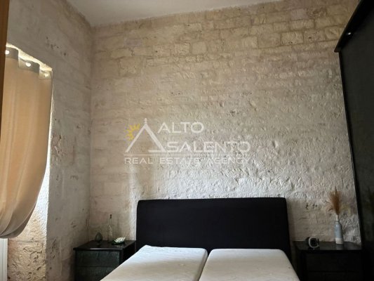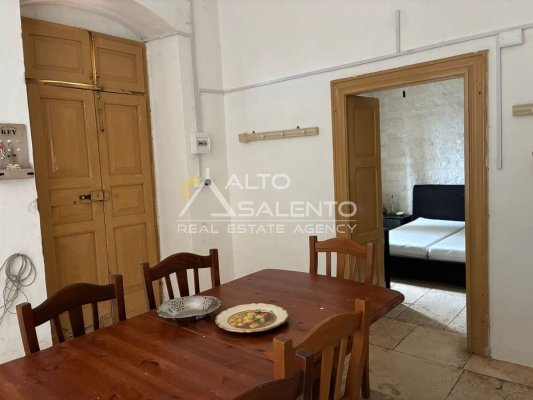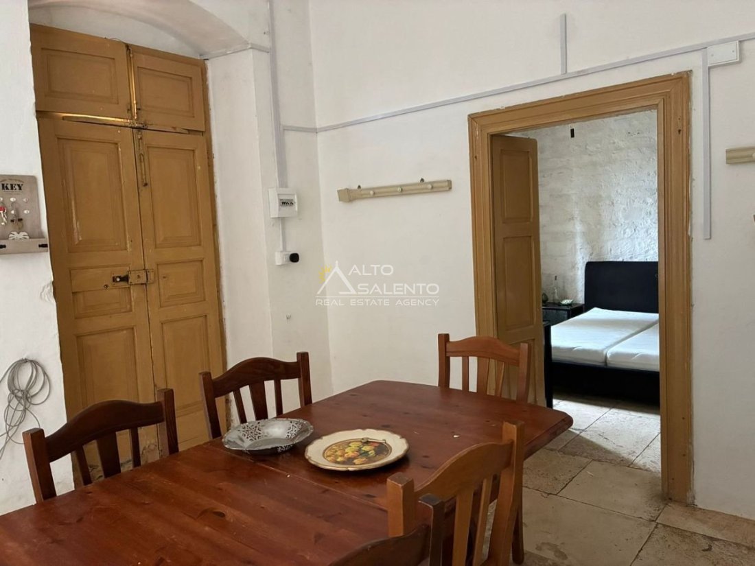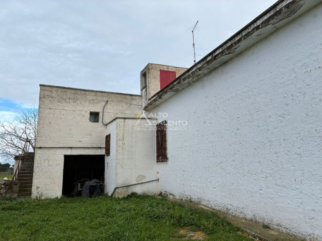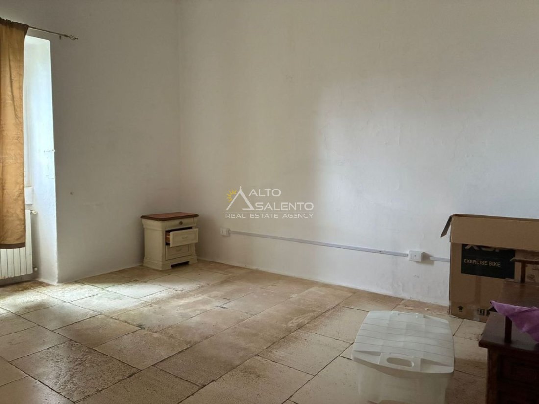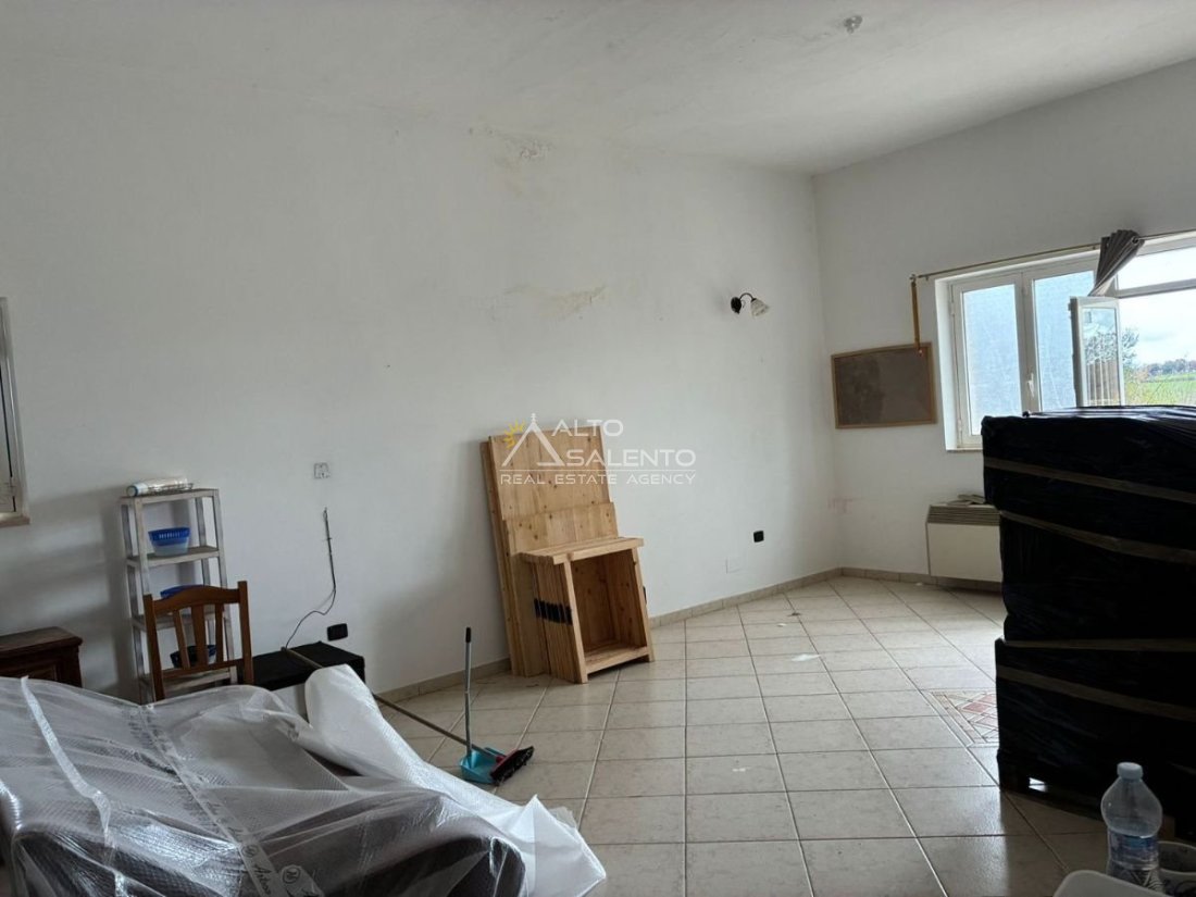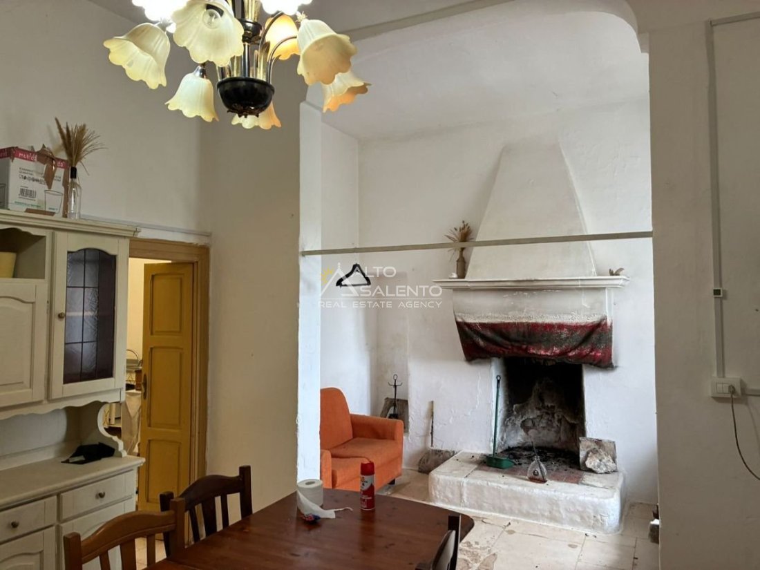 La proprietà conserva il carattere autentico dell’architettura rurale pugliese, con pavimentazione originale in chianche e ambienti ampi impreziositi da dettagli d’epoca.