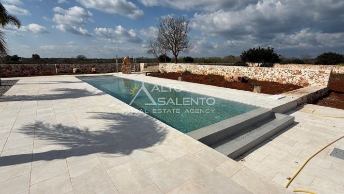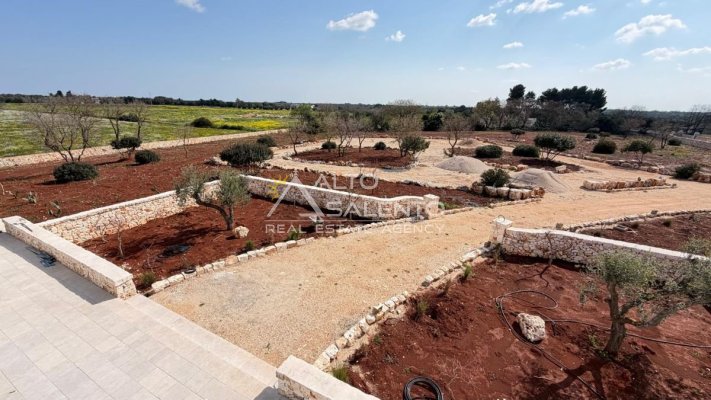 Terreno di Pertinenza: Una distesa di circa 15.450 mq che ospita un uliveto produttivo e muretti a secco originali, elementi iconici del paesaggio pugliese.