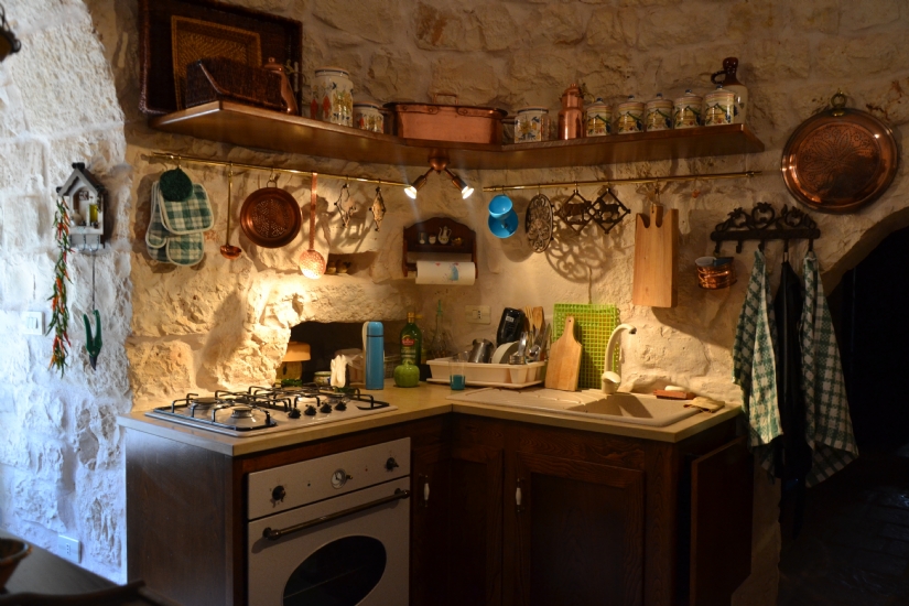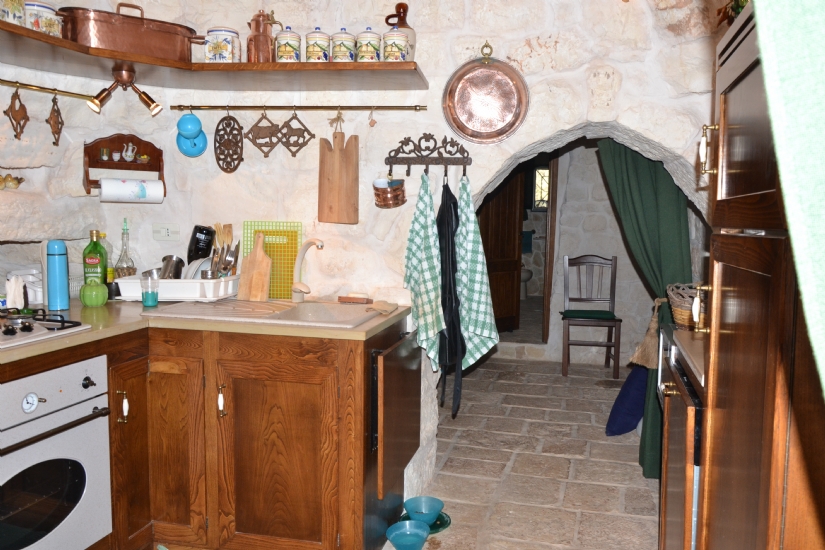 Il trullo racchiude in se tutto il fascino antico e le caratteristiche architettoniche delle vecchie trullare in pietra. La sua ristrutturazione non ha per nulla alterato la sua originalità, ma al contrario ne ha esaltato le sue particolarità, come le volte in pietra a vista , il grande camino che domina la stanza d'ingresso ed il vecchio pavimento perfettamente recuperato in alcune zone .