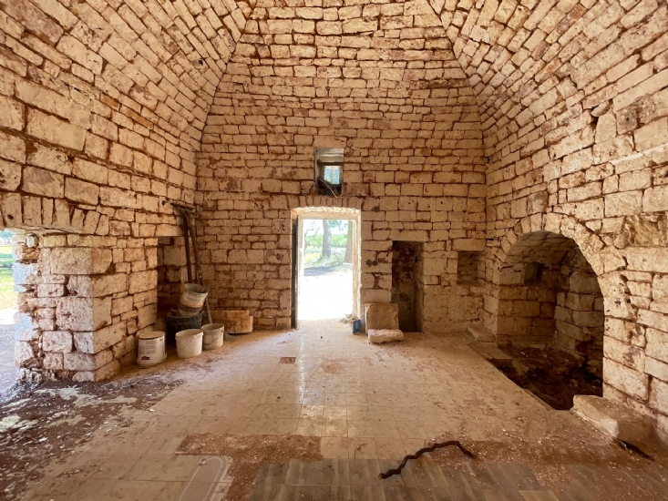 La lamia esistente con trulli è una costruzione storica di 71,60 mq, realizzata con pietra antica, un materiale che dona un fascino autentico e senza tempo.
