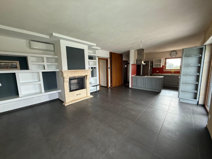 Zona Giorno: Un ampio open-space con camino che unisce il soggiorno alla zona pranzo, perfetto per momenti conviviali.
