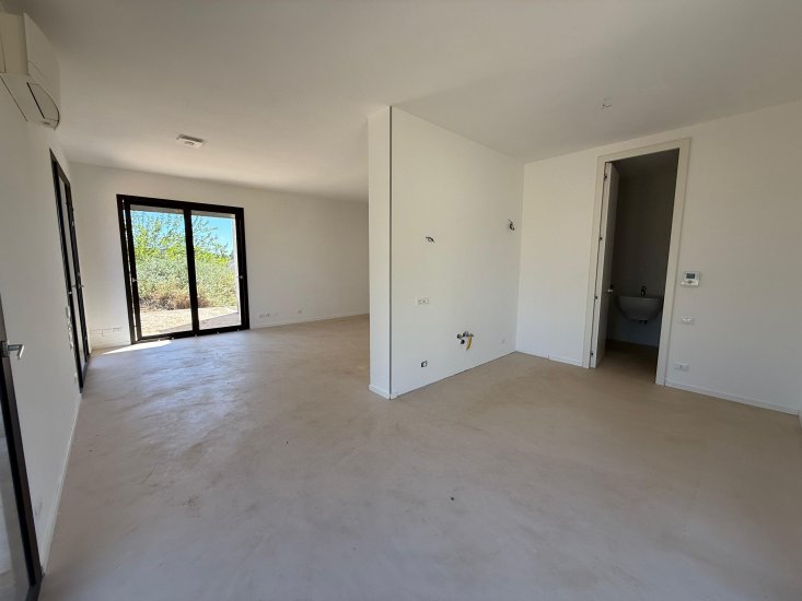 Il piano superiore della villa si compone di due camere da letto, un bagno e una cucina con finiture moderne. Tra le caratteristiche principali, si segnala la presenza di una serranda a scomparsa automatica, un sistema di allarme, riscaldamento a pavimento, pavimenti in resina e un condizionatore per il massimo del comfort.