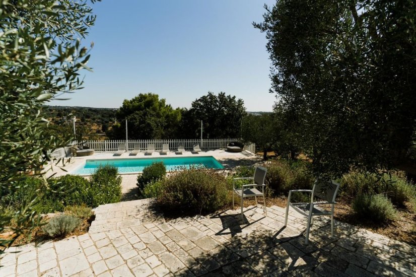 Nel cuore vibrante della Valle d’Itria, incastonato tra morbide colline e uliveti secolari, sorge questo straordinario complesso di antichi trulli con piscina, un autentico rifugio pugliese dove la tradizione incontra il comfort contemporaneo.