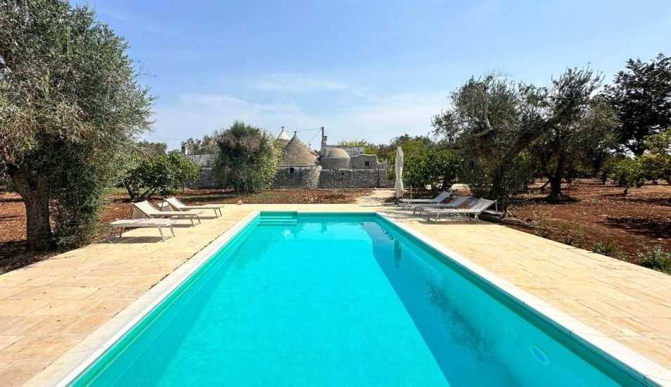 La proprietà si sviluppa con trulli e lamia che dialogano armoniosamente tra loro, uniti da ampie corti in chianche originali che raccontano la storia di un’architettura antica e genuina. Gli ambienti interni, curati e accoglienti, conservano le mura in calce bianca e i...