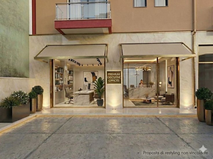 Piano terra: ampio ambiente open space con grandi vetrine su strada, che garantiscono ottima esposizione e luminosità naturale. Gli spazi, facilmente modulabili, si prestano a essere organizzati come area vendita, showroom o spazio accoglienza clienti.