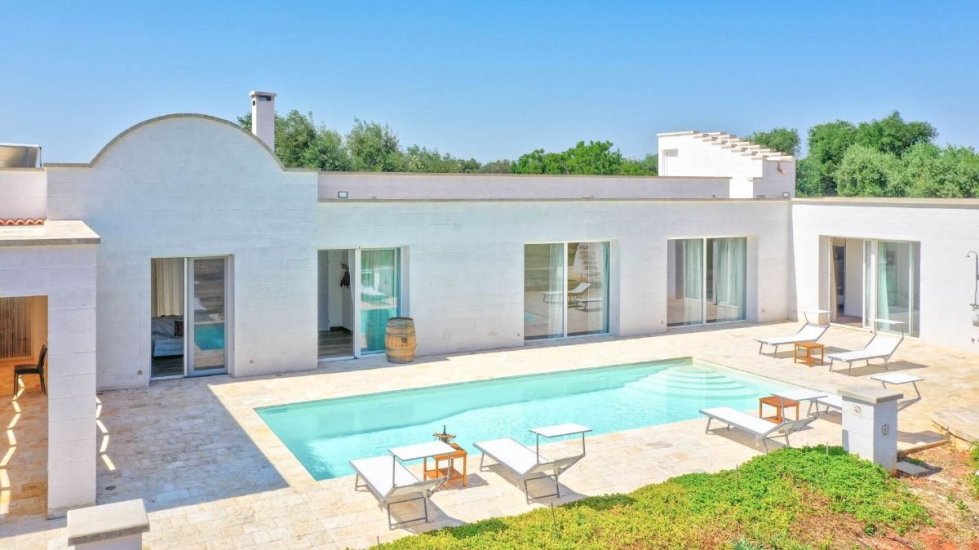 Immersa nelle tranquille campagne di Carovigno, nel cuore dell’Alto Salento, Villa Puspo è una splendida proprietà che coniuga alla perfezione eleganza contemporanea e autenticità pugliese. Circondata da ulivi e frutteti, con piscina privata e un suggestivo trullo in pietra, questa villa rappresenta un rifugio esclusivo per chi desidera vivere la Puglia più autentica in totale privacy e comfort.