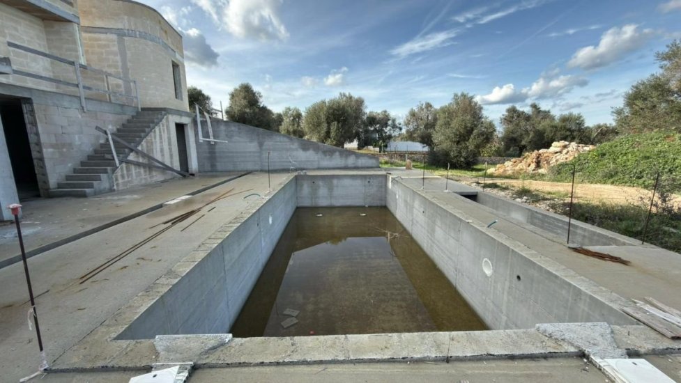 Splendida villa con piscina immersa nella quiete della campagna pugliese, situata a Carovigno in Contrada Sierri, circondata da un ampio terreno agricolo di 7.749 m² con ulivi secolari.