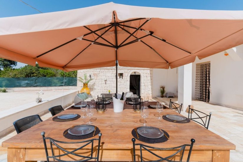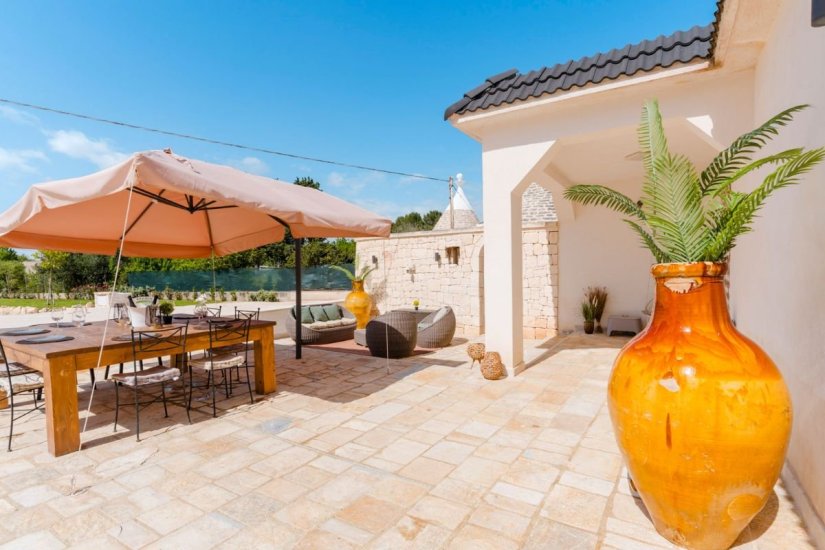 Nel cuore autentico della Valle d’Itria, immersa nella quiete della campagna di Ceglie Messapica, sorge questa elegante villa con trullo indipendente e piscina, recentemente ristrutturata. Una dimora di charme che unisce architettura tradizionale pugliese e design contemporaneo, offrendo ambienti accoglienti, funzionali e perfettamente integrati nel paesaggio.