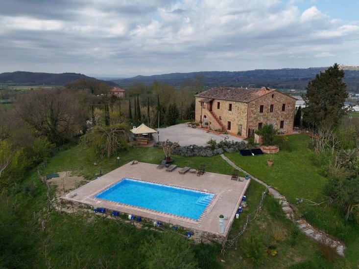 Casale storico ristrutturato a Città della Pieve, situato nella campagna umbra al confine con la Toscana. L’immobile, risalente alla fine del XVIII secolo, si sviluppa su una superficie complessiva di circa 435 mq e si inserisce in un contesto rurale riservato con vista panoramica a 360° sulla campagna e sul Monte Cetona. La ristrutturazione ha preservato le caratteristiche architettoniche originarie, integrandole con soluzioni funzionali per l’uso residenziale o ricettivo.