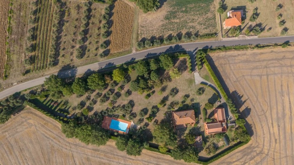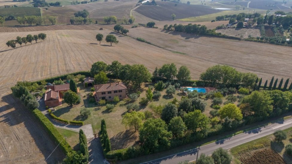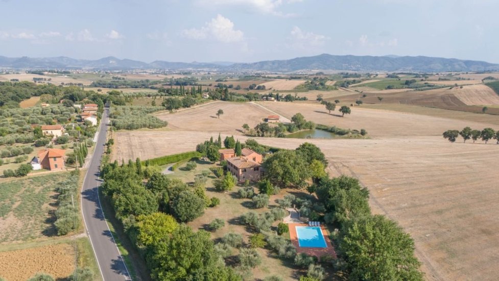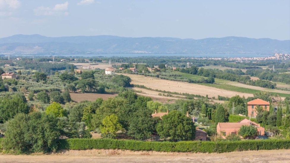 Complesso immobiliare con casale, piscina e vista Lago Trasimeno al confine tra Umbria e Toscana