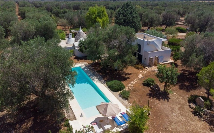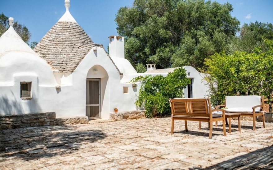Immerso nella quiete della campagna pugliese, questo affascinante complesso immobiliare è composto da uno storico trullo a quattro coni e da una moderna lamia, sapientemente integrati per offrire comfort, privacy e autenticità.