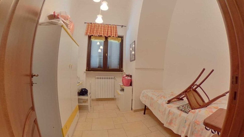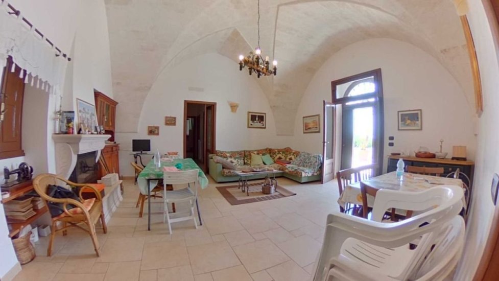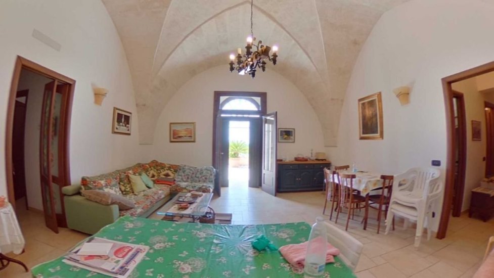 L’abitazione si sviluppa su una superficie di circa 130 mq calpestabili ed è caratterizzata da ambienti autentici e ben distribuiti. L’ingresso conduce in una ampia sala impreziosita da una grande volta a stella, elemento architettonico tipico della tradizione pugliese che dona fascino e luminosità agli spazi. La zona notte comprende tre camere da letto e un bagno principale, mentre la zona di servizio è completata da cucinotto, ripostiglio e bagno di servizio.