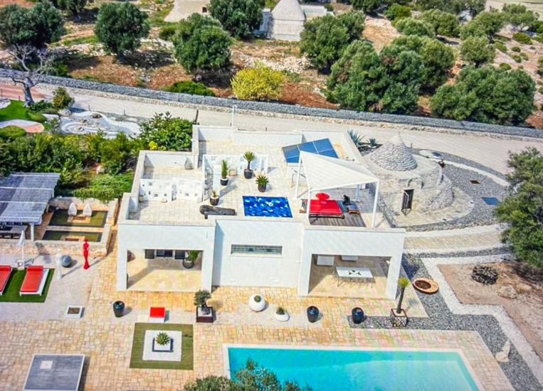 In posizione riservata e dominante, con una vista mare ampia e suggestiva, questa villa con trullo attiguo rappresenta un progetto architettonico di alto livello, firmato da uno studio di eccellenza che ha saputo coniugare innovazione tecnologica e tradizione pugliese.