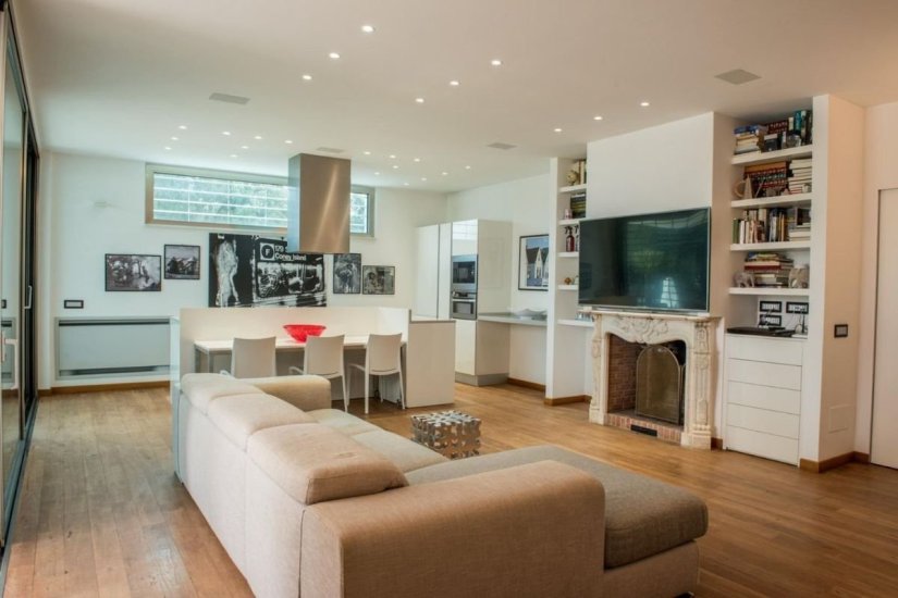 La zona giorno è ampia e ariosa, progettata...